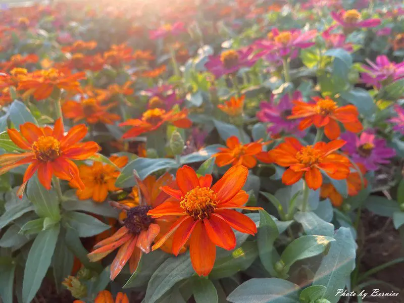 個頭圓圓的雙色圓仔花海現正滿開中,搭配夢幻的天使花、百日草鋪排成五彩繽紛美麗花毯,來到這賞花輕鬆愜意;今年發現抓準時機飛機、101、親水造景與花海同框,讓你的回憶更豐富