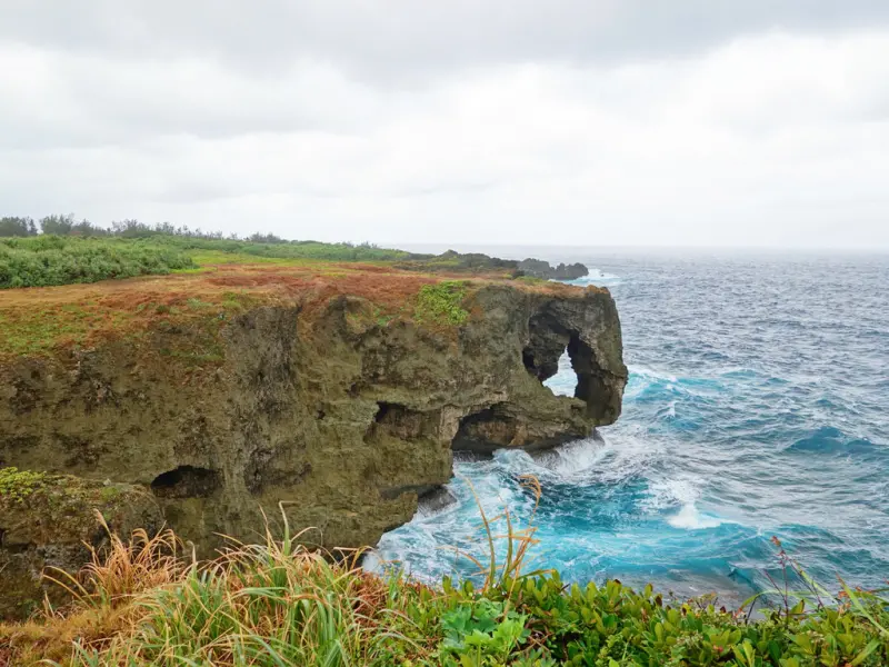 「萬座毛」也是行程中的重要景點,地址位於日本沖繩縣恩納村 904-0411。這裡的開放時間為 08:00 至 19:00,費用是 100 日圓。萬座毛的建議停留時間是 1 小時,但在這次一日遊行程中,旅客在此處的自由活動時間約 20 分鐘。