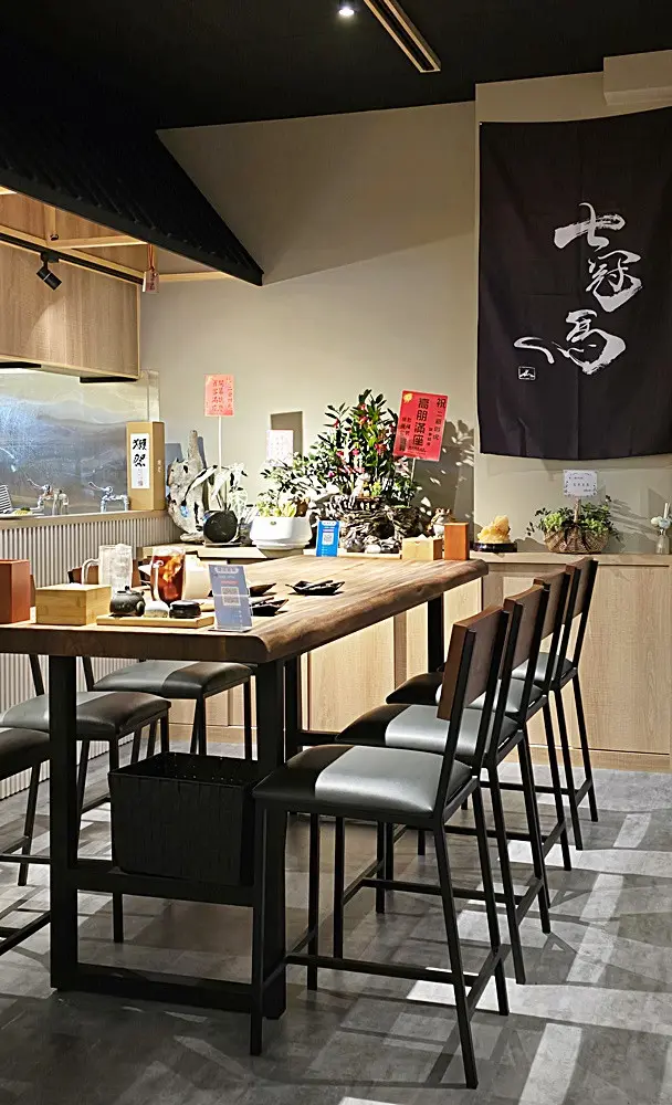 二爺四虎食屋izakaya的店內裝潢有自家特色。整體採用日式風格的木質調,搭配月球造景及綠意。加上黃昏色的燈光氛圍,有別於其他常見的日式居酒屋。