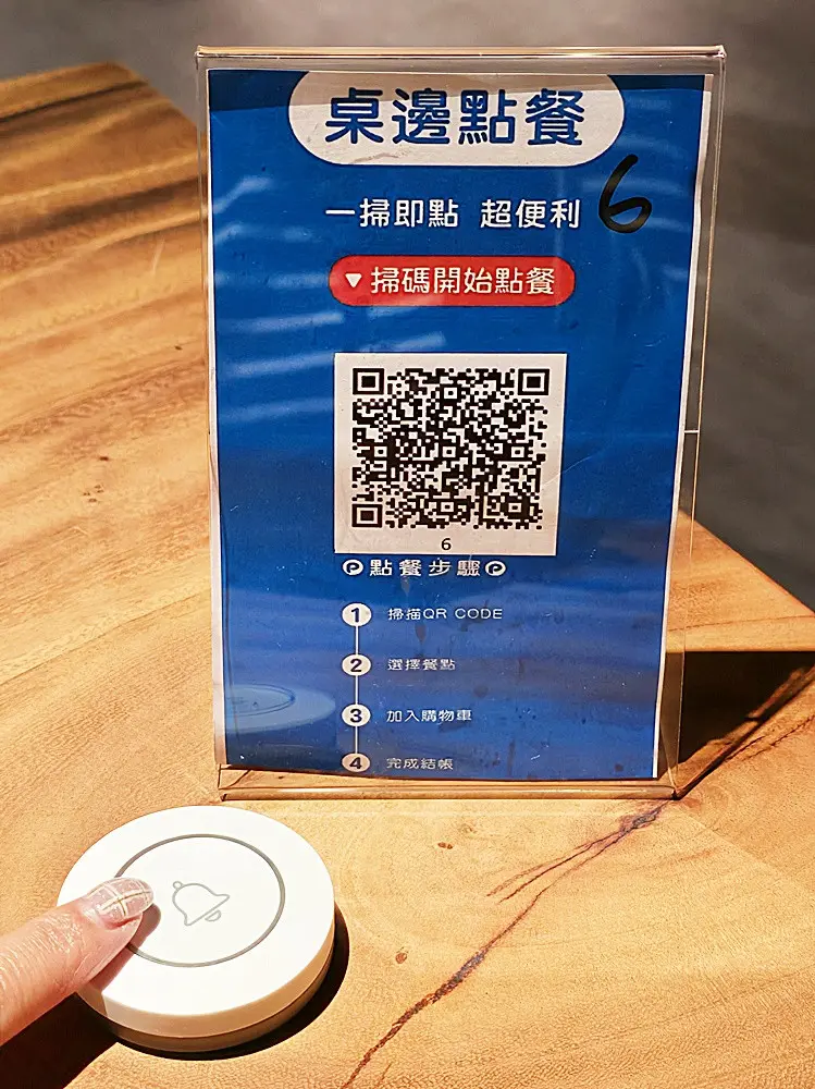 這裡還提供無菜單料理服務。顧客可以依照自己的預算,提早 3 至 5 天預訂告知,店家就能提供客製化服務。此外,店家還提供貼心的桌邊掃描點餐服務,桌上也有服務鈴。