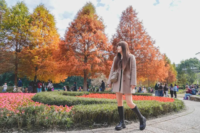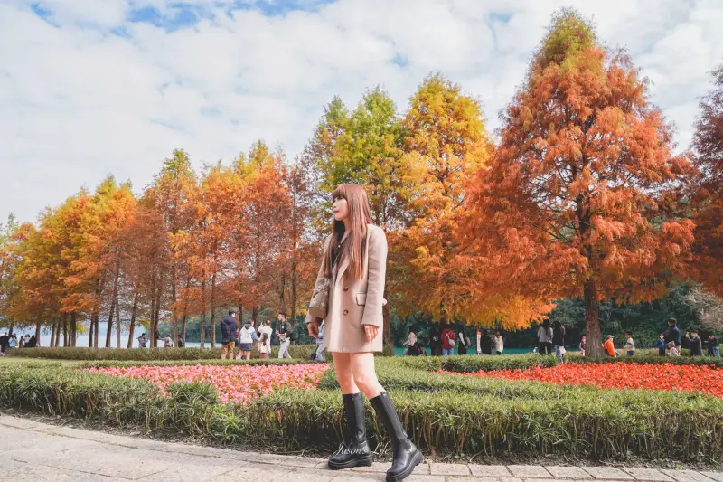 落羽松步道:紅、黃、綠的漸層美景與水濱婚紗廣場
