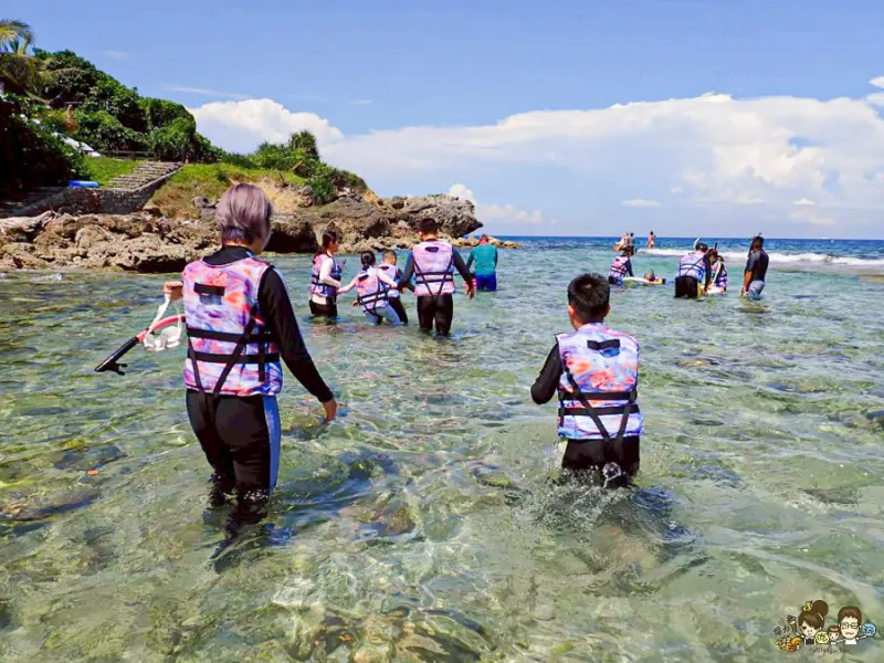 時間到會有專人來民宿接人,跟著領隊到店家換裝就可以親近海域了
