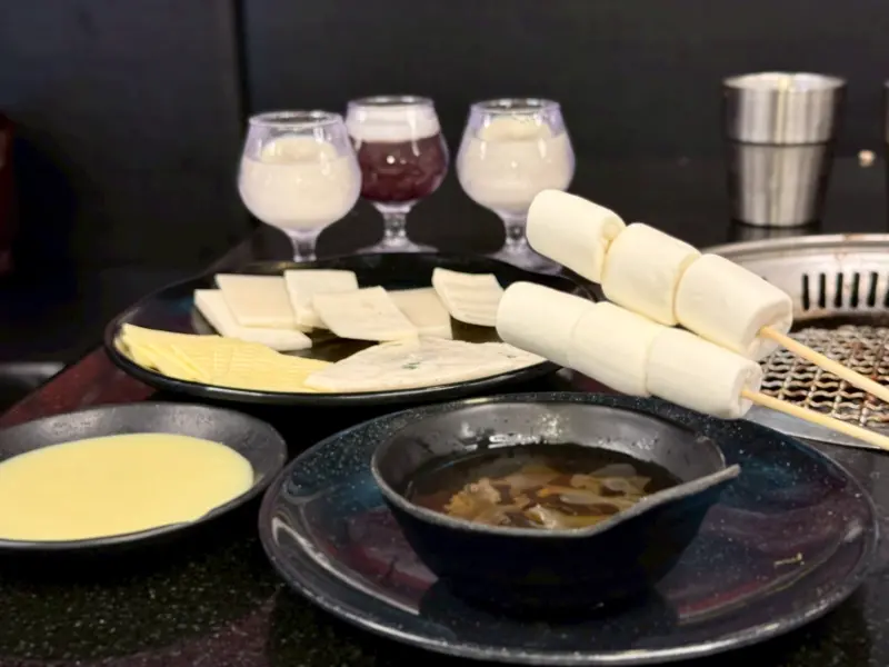 需要烤過的有日式麻糬還有煉乳乳酪餅還有超特別的葱抓餅