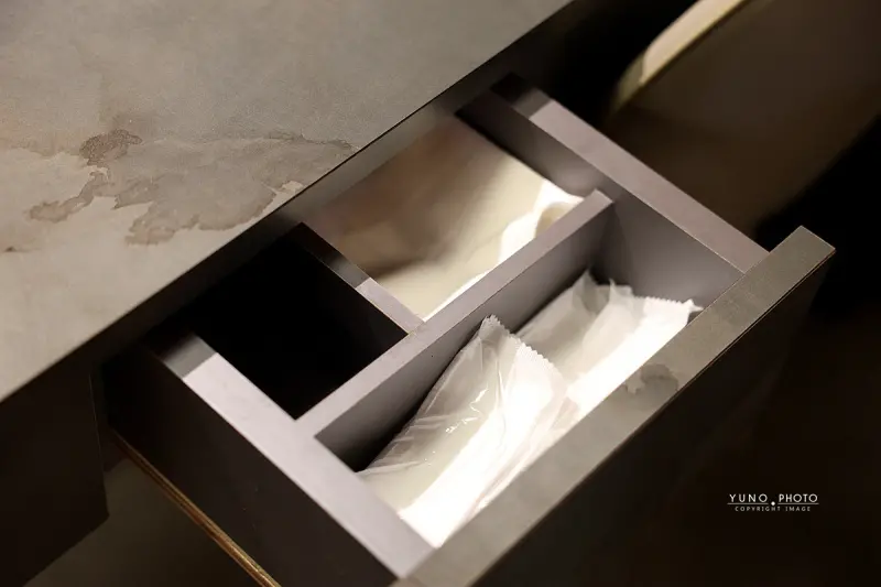 每張桌子側邊都設有隱藏抽屜 裡面放著乾淨的紙巾與濕紙巾 吃鍋不怕手忙腳亂