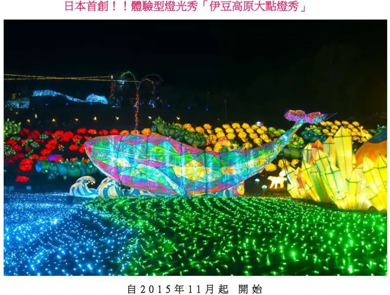 伊豆高原大點燈秀致力於打造每個季節都有不同風貌的燈飾,最終呈現出與眾不同的光之世界;更是「第8屆・第9屆・第10屆燈光秀大賞」、專業表演部門連續3年榮獲全日本第1名及《Walker+ 全國燈光秀排行榜》連續8年獲得第1名;擁有這麼多殊榮同時還擁有日本首創~體驗型燈光秀,是不是該安排一趟呢