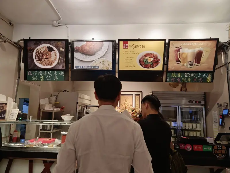 淡水黑殿排骨飯創始店、以台梗九號米與溫體豬製成、飄香超過50年。祖傳酸菜及特製肉醬豆干、是成就古早味的畫龍點睛配角。