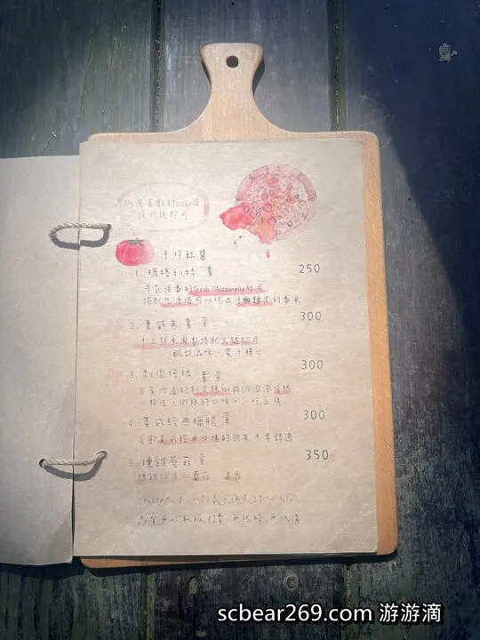 森窯主要提供約10吋大小的手工窯烤薄皮披薩、份量大約是1到2人份。菜單封面設計充滿童趣、內頁則詳細介紹了各種口味。