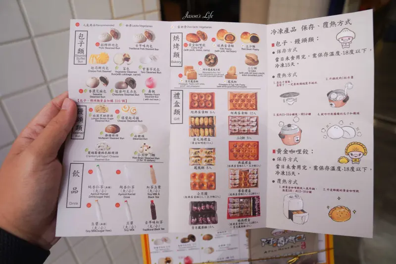 阿潘肉包的菜單上、除了現場可以購買的熟食外、也可以買冷凍的回去。如果是要現場吃到熱騰騰的包子、可以直接購買品嚐。菜單上都會有教你如何將冷凍的食品回溫最好吃、店家現場試吃也是沒在客氣的、試吃份量給的很足。