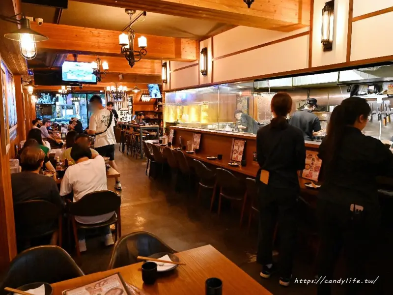 ABV日式居酒館新竹關新店的裝潢氛圍相當有特色,一走進店內就能感受到濃濃的日式風情,溫暖的木質色調搭配柔和的燈光,營造出放鬆卻又帶點熱鬧的氛圍,開放式的料理吧檯設計,讓顧客能近距離欣賞師傅專注料理的過程