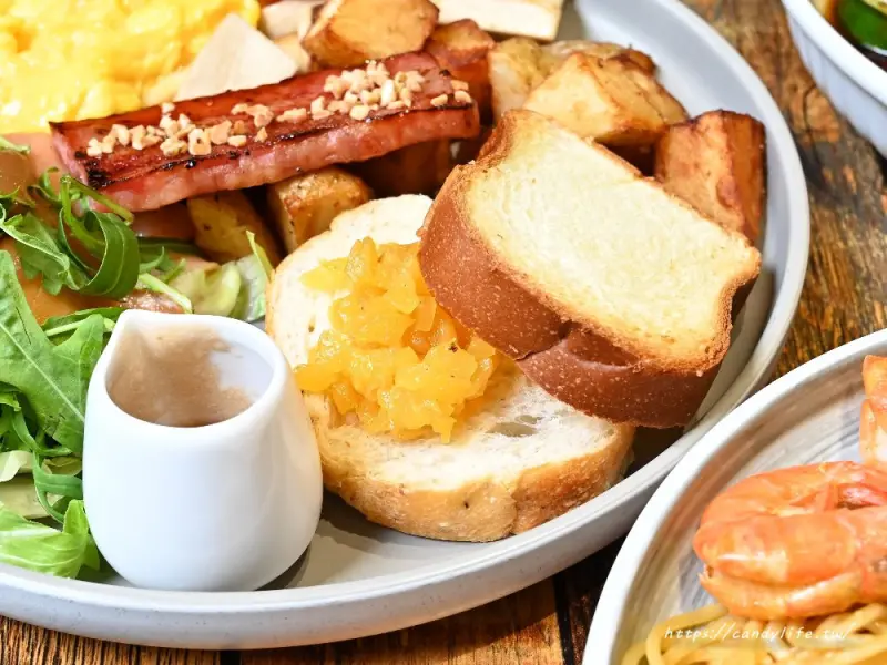 喜歡吃早午餐拼盤的朋友,糖糖蠻推薦Proi kitchen的澳式大早餐拼盤,份量超大,看起來相當澎派,裡頭包含滑蛋、地瓜、焦糖厚培根、地瓜、燻鮭魚、生菜、特製酸種麵包、鮮奶吐司、炒菇及炒薯塊