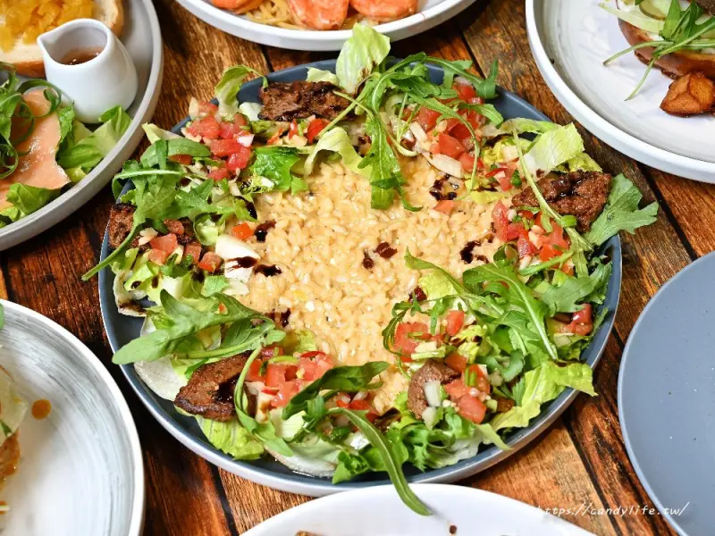 煙燻鮭魚搭配的是店家自製的油醋醬,整體吃起來偏酸,可以搭配一旁的生菜一起享用