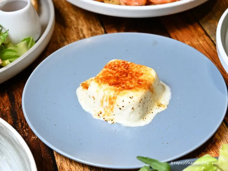 手工甜點也很厲害!這款乳酪蛋糕可不是單純的乳酪蛋糕,裡頭還加入了豆漿,再加上糖下去炙燒,入口多了豆漿香氣及焦糖的香甜,好吃不膩口