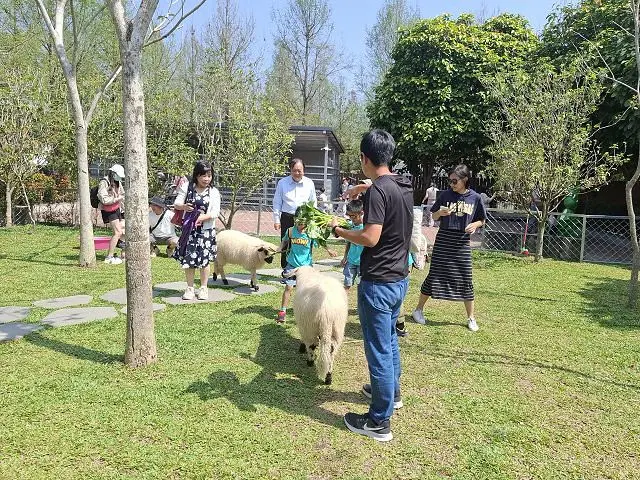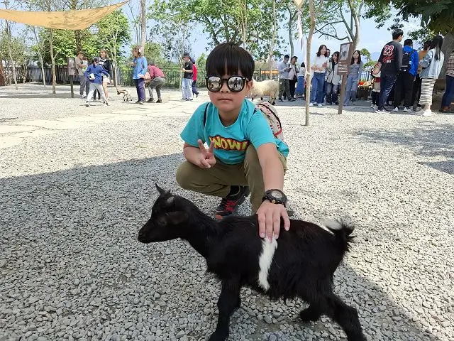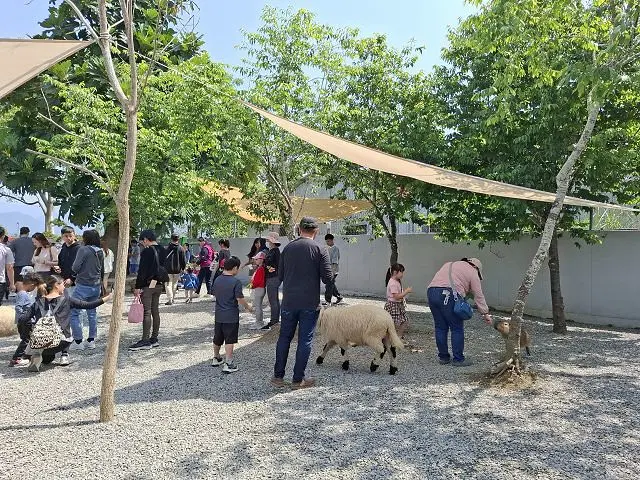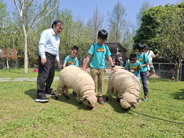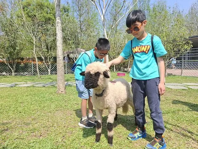 園區內的動物互動體驗從迷你馬開始,牠們的身高與小朋友相仿,個性十分溫和親近,是孩子們近距離觀察的好夥伴,而園區另一大亮點,則是從瑞士遠道而來的「瓦萊黑鼻羊」,牠們有著雪白的捲毛與漆黑的臉龐,彷彿是從童話繪本中走出來的角色,可愛的模樣瞬間融化了所有人的心,也是園區內人氣極高的動物明星。