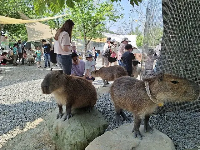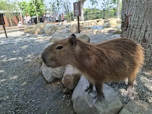 園區的人氣王,絕對非慵懶呆萌的水豚君莫屬,看著牠們閉目養神泡著水的模樣,彷彿時間都慢了下來,所有的煩惱都被牠們療癒的表情融化了,同樣受到歡迎的還有毛茸茸的羊駝,牠們頂著一頭蓬鬆的毛髮,配上時而無辜、時而逗趣的眼神,光是靜靜看著牠們反芻牧草的模樣就非常有趣,在這裡可以真正實現被羊駝與水豚包圍的夢想。