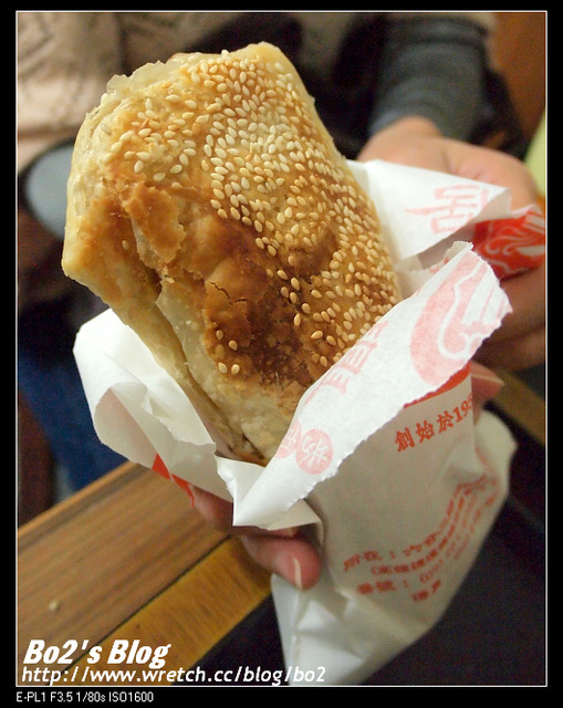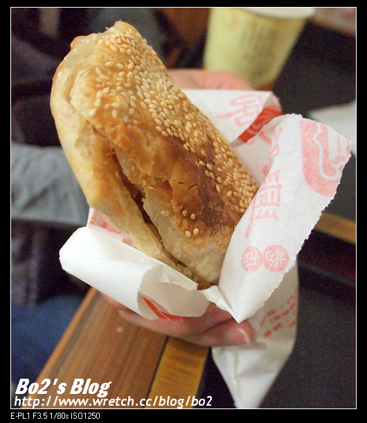 燒餅表皮帶點焦脆,看起來似乎挺不錯的哩。