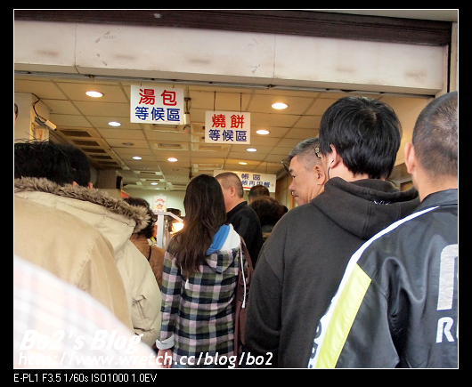 排隊人潮分成兩股,左邊是排湯包,右側則是排燒餅,