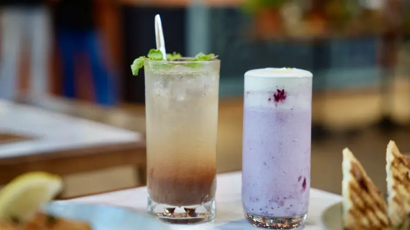 享用完豐盛的地中海料理,當然需要完美的飲品與甜點來收尾,「吐司利亞」的「莓果優格飲」呈現夢幻的紫色,喝起來酸甜濃郁,不僅健康無負擔,也能巧妙地平衡主餐的風味,而甜點「酒香提拉米蘇」更是屬於大人的成熟美味,馬斯卡彭起司的滑順口感中,透出淡淡的酒香,與濕潤的手指餅乾完美結合,為這豐盛的一餐,畫下最迷人的句點。