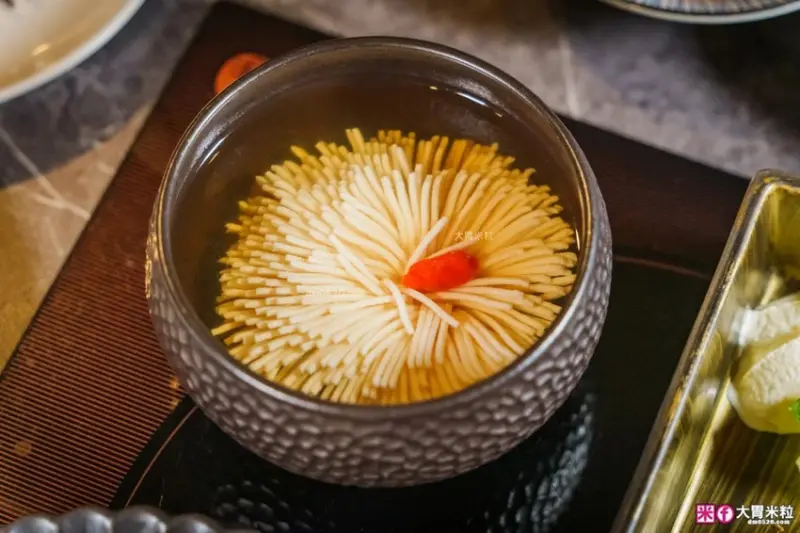 還有相當搞剛的經典名菜-菊花豆腐(又稱文思豆腐)居然能在這邊吃到!主廚精心雕刻的豆腐宛如菊花般盛開,糖水充滿桂花釀香氣配上入口即化的豆腐,美得讓人難忘!