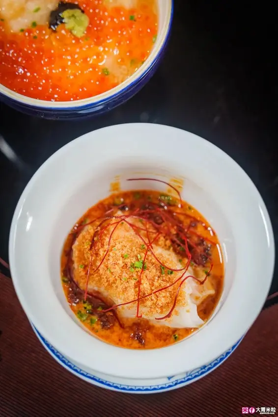 另一款副餐「手工鮮蝦雲吞佐野生烏魚子粉」入口相當彈牙,加上烏魚子特有濃郁海味與特製麻辣醬汁,真的吃完讓人意猶未盡!