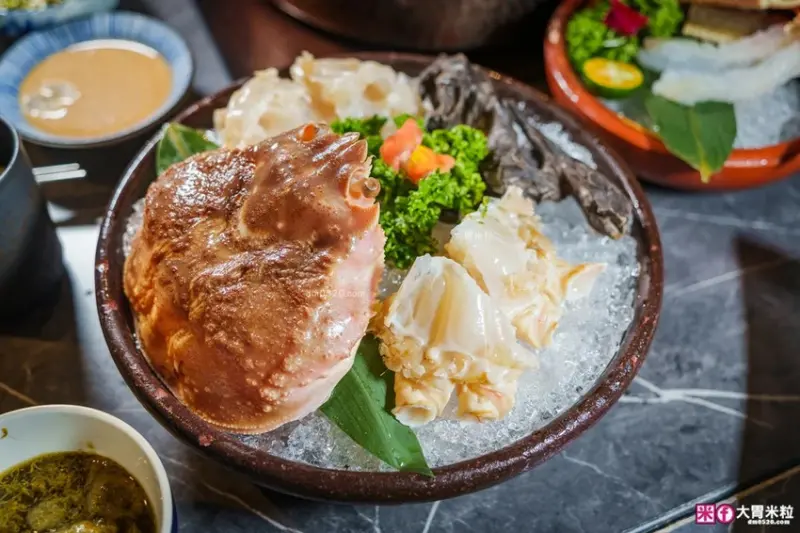 第二吃則是松葉蟹腳刺身,入口冰涼清甜,配上哇沙米醬油,纖維細緻到彷彿在吃高級版果凍,免飛日本也能享受如此美味,未免太幸福了!