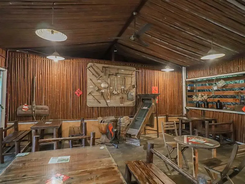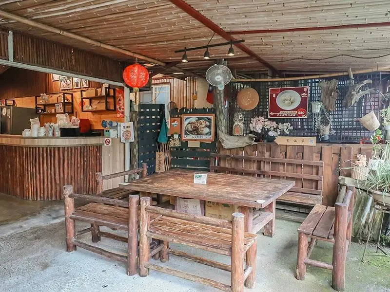 星仙草的地理位置非常特殊,它坐落在台3線苗124縣道上,位於獅潭仙山海拔約600多公尺處。從上山開始,緊鄰農園的風景彷彿已踏入了田園畫中。沿途蜿蜒的山道,迎接您的將是青翠的山林與微微的草木香氣。星仙草以古樸元素呈現農家之美,店內沒有過多現代裝潢。木製桌椅保留了手工的溫度,並擺設著早期的客家農村務農工具。這裡結合了民宿與客家餐廳,並且設有免費停車場可供停車。在春天櫻花盛放時,這裡更是家族一同登山遊玩與賞花的絕佳地點。