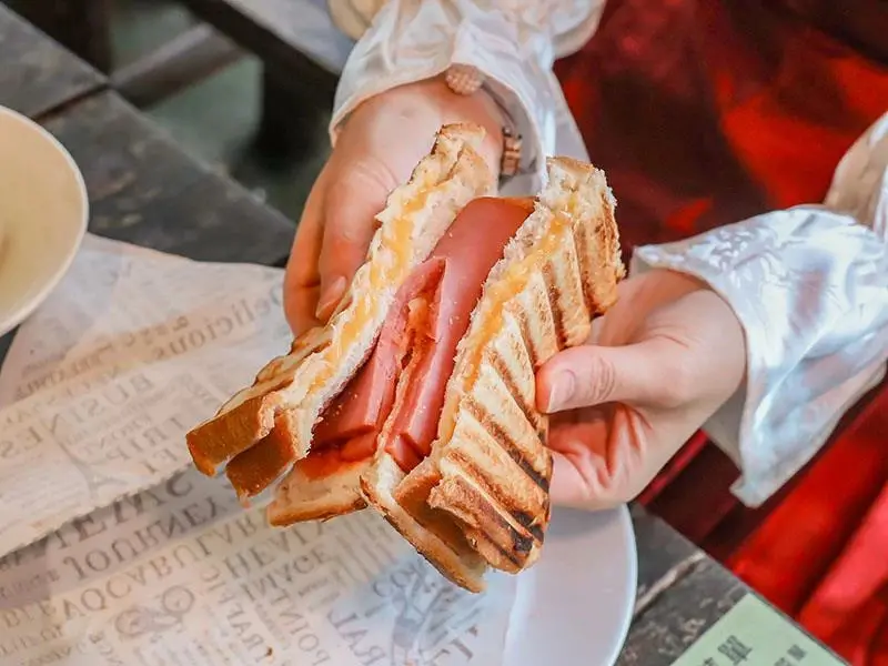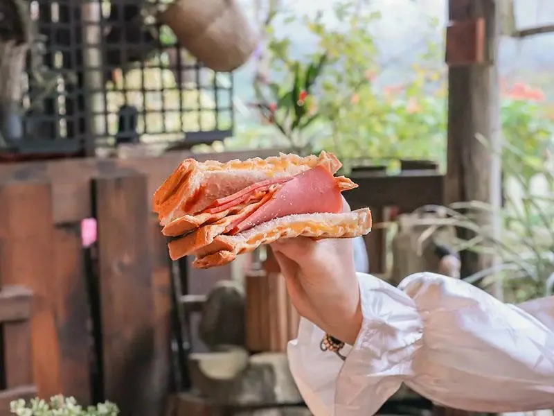 為了滿足來訪的重機車隊或家庭旅客,星仙草也提供鹹食選項。例如火腿帕里尼,定價85元。這道點心夾著鮮嫩的火腿和香濃的起司,經過熱壓後外皮金黃酥脆,香氣撲鼻。外酥內軟的口感,讓人不自覺一口接一口,很適合在登山遊玩或仙山取水後,當作休息站的餐點。