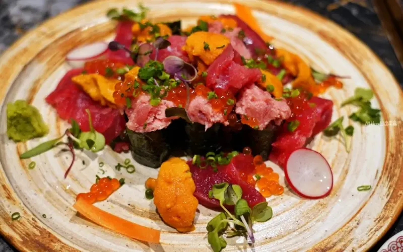 除了砂鍋飯,GOKURi拼盤也是店內另一個招牌必點料理。這個豪華的拼盤是以軍艦卷的形式呈現,上面點綴著海膽、鮭魚子、以及頂級的金槍魚(鮪魚)。這款拼盤讓顧客能夠一次品嚐到多種新鮮且高品質的海味,豐富的口感層次令人難以忘懷。此外,當季海產的醬燒金目鯛魚也是不容錯過的佳餚。金目鯛魚肉質細緻,經過醬燒後煮得十分入味,帶有甜鹹適中的風味,是搭配日本酒的絕佳選擇。