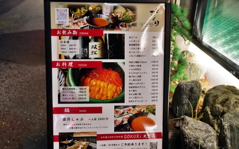 埼玉大宮店GOKURi,專營日本酒與創作和食。必點海膽鮭魚卵砂鍋飯,開鍋華麗吸睛,海膽鮮甜,鮭魚卵逼波口感,是預約困難的精緻日式料理。