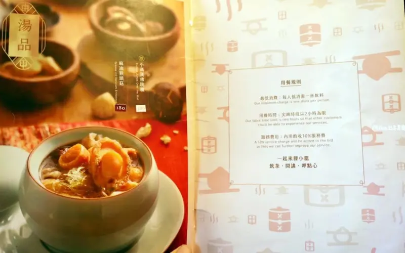 這家風格獨特的港式飲茶店位於台北市大同區延平北路二段 60 巷 21 號。營業時間為每日 11 點至 20 點,且每週一固定公休。前往用餐前,消費者應留意店家的低消限制。內用低消有 2 種方式,一是每人須點 1 杯飲料。如果選擇不點飲料,則需達到每人 300 元的最低消費金額,可以任點菜單上的其他品項。此外,內用將會加收 10% 服務費,且在人潮較多的尖峰時段,用餐時間將被限制為 2 小時。菜單提供了多樣化的選擇,包括手工蒸點、小食、煲湯、甜品,以及具備話題性的月老好姻緣系列甜點、茶飲與調酒等。