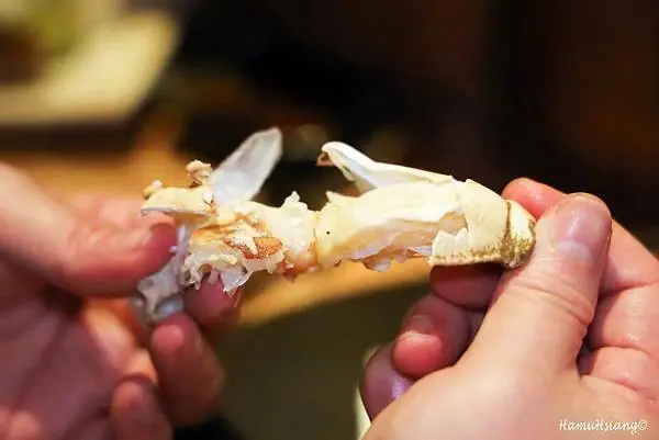 新鮮度是高級日料的靈魂,為了確保食材品質,店家特別設有飼養水族箱,裡面有鱈場蟹、松葉蟹和毛蟹等活跳跳的海鮮,這些頂級食材的活力模樣讓人對上桌的美味充滿期待。在這次的用餐經驗中,活體麵包蟹是令人驚豔的亮點。餐廳會貼心地先將活體端上桌供客人拍照留念,儀式感十足。整隻蟹煮得恰到好處,蟹肉鮮甜細膩且富有彈性,而裡面的蟹黃更是濃郁的精華。蟹黃帶有沙沙的口感,香氣十分豐富,將蟹黃挖出來拌著蟹肉一起品嘗,每一口都充滿了濃郁的海鮮風味,超級過癮。此外,餐廳還提供特製的醋來搭配,讓蟹肉的鮮甜被襯托得更加突出,並帶來清爽的酸味,讓整體層次更豐富。即使帶回家冷冷地吃,沾點醋也依然風味不減。