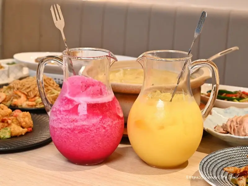 飲品點了壺裝的果汁,都是新鮮現打,甜度來自水果本身,好喝又解膩