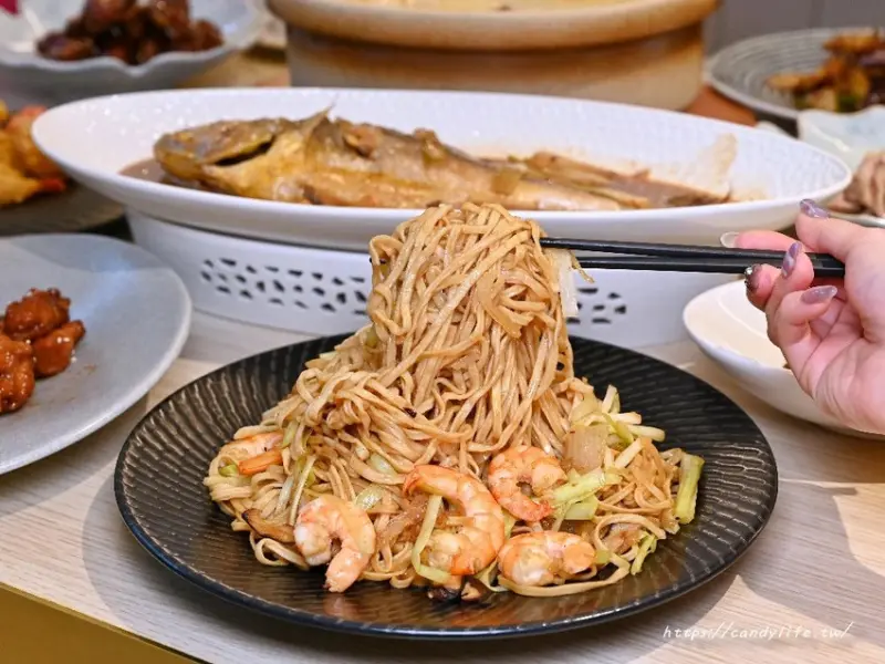 除了白飯糖糖還點了一份干燒剝殼蝦伊麵,麵體還蠻Q的,帶有鍋氣香,裡頭搭配肥美彈牙的蝦仁、韭黃及洋蔥,份量上還蠻多的