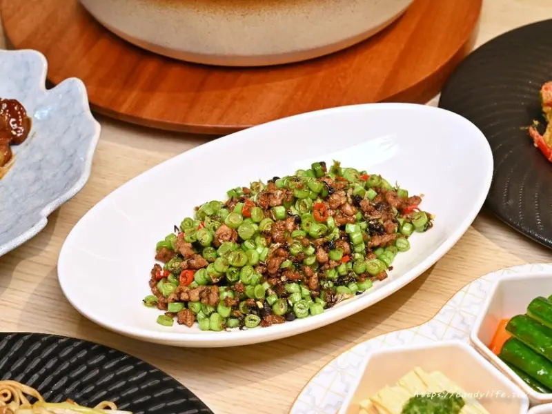 這道有點像我們常說的蒼蠅頭,以四季豆、豬肉末、朝天椒與豆豉一同快炒而成,香氣濃郁撲鼻,鹹香中帶著微辣豆豉的香氣與辣椒的勁辣完美融合,炒得油亮入味,每一口都能嚐到四季豆的脆口、豬絞肉的鮮香,鹹香夠味超級下飯,一不小心就會把整碗白飯掃光!