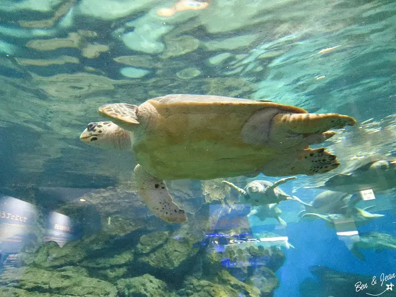 在南館還可以看到大規模的「海龜迴游水槽」,展示了綠蠵龜、赤蠵龜、玳瑁等。水族館還特別設置了沙地,讓海龜可以在繁殖期模擬上岸產卵,設計非常貼心。另外,位於3樓的企鵝館裡面有4個種類、超過100隻企鵝。在水母畫廊可以看到北海道的雪天使,牠們體積只有2到3公分,生活在太平洋兩極至北海道冰沿下層流域,非常可愛。