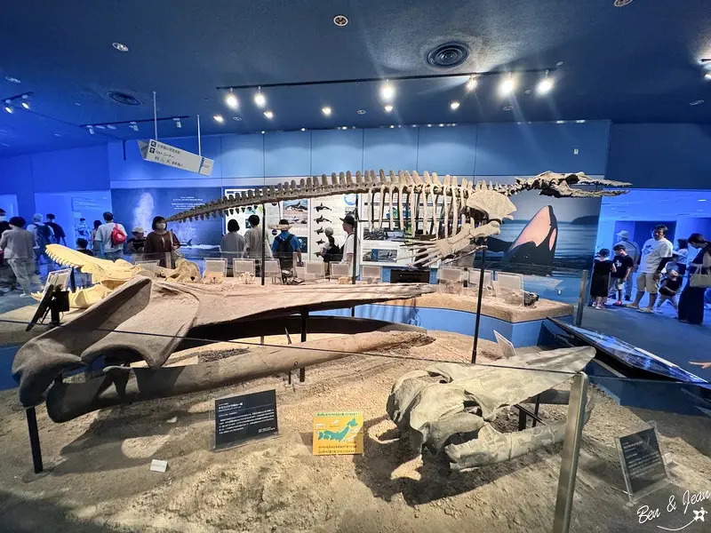 另外,虎鯨又稱為殺人鯨或逆戟鯨,是日本唯二可以看到的人氣生物,台灣可是看不到的。虎鯨秀也很精采,虎鯨身形龐大,體長最長可達10公尺,牠們也是最聰明的海洋哺乳類動物之一。除了海豚和虎鯨,人氣動物小白鯨的公開訓練,每天也有三場次,所需時間約10分鐘。此外,北館的潮風廣場可以看到黑腳企鵝的餵食秀。北館還陳列了一些巨型標本,以1比1的完全比例呈現,非常值得一看。
