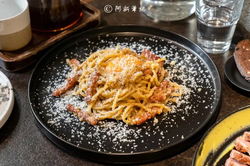 「Carbonara培根蛋黃麵」的美味程度不輸給舒肥脆皮鴨胸。這道義大利麵看似簡單,但其中的細節處理十分到位。料理上桌後,需要將金黃色的蛋黃拌勻,這樣香氣與口感會變得更滑順。盤子上宛如白雪的食材,是現削的粗粒起司,稍微靠近就能聞到內斂的起司香氣。義大利麵的Q彈口感,熟度拿捏得剛剛好,外表起司香氣濃郁,中後段更有逐漸發光的黑胡椒提味,整體的味道平衡做得超級棒。義大利麵中的培根吃起來嫩口,還帶有點蜜汁的鹹甜滋味,與濃郁的起司香氣搭配,是加倍的美味。