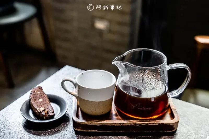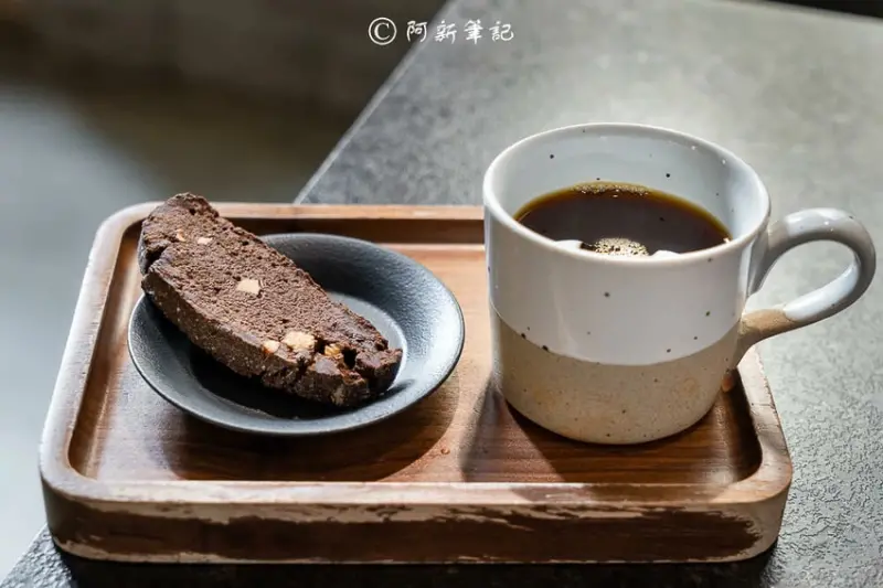 在飲品方面,《入厝咖啡》提供了單品咖啡的選擇。例如「衣索比亞古吉罕貝拉」,是採用日曬處理的咖啡豆。服務人員會介紹豆子的特性與烘焙處理方式,讓顧客在品味前就能想像出飽滿的風味。手沖咖啡喝起來香氣很飽滿,果酸香氣也較為豐富,適合喜歡細品咖啡韻味的人。隨咖啡附上的小餅乾,吃起來硬又脆,上面還有堅果,味道很香濃,但口感偏乾,建議搭配咖啡一起享用,才是最佳享受。