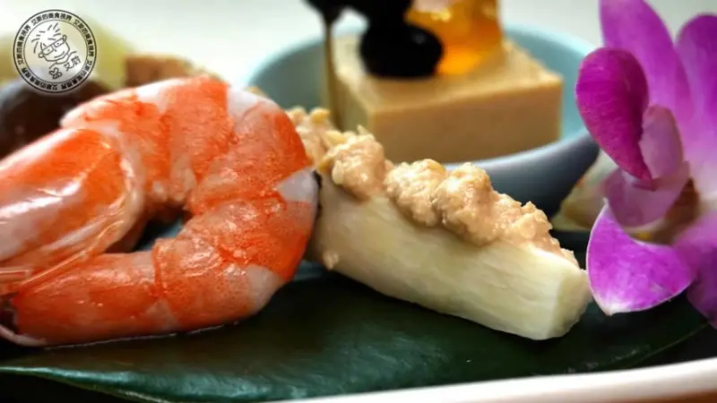 NT.2100套餐的前菜組合尤其令人驚喜,一開始以清爽的筊白筍豆腐沙拉開胃,冰涼順口。接著松露蝦一入口就是滿滿的松露香氣,帶來高級感。胡麻豆腐則口感濃郁滑順,越吃越順口。其中,秋刀魚佃煮鹹甜入味、魚肉細緻,被認為是前菜中的靈魂主角。栗子蜜蓮藕甜甜脆脆的口感也很特別。整份前菜份量剛好,味道層次豐富,讓人對後面的主餐充滿期待。