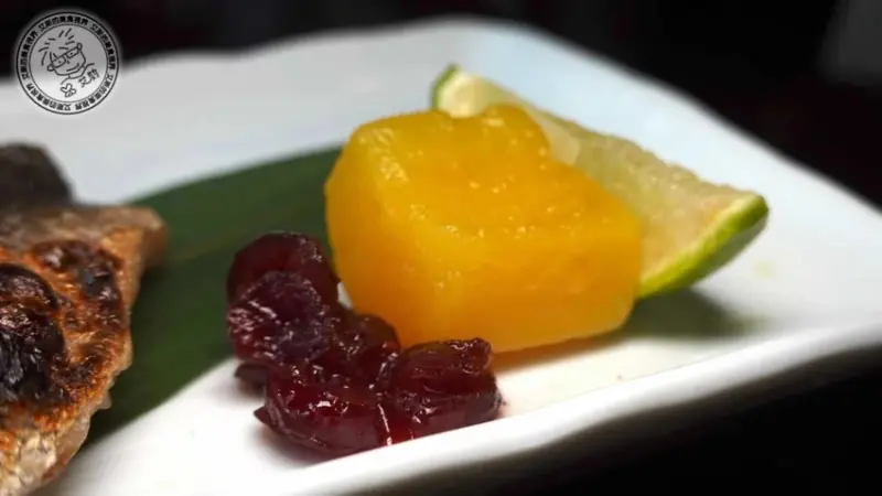 在烤品部分,「鹽烤澳洲寶石魚」外皮烤得酥脆,但內裡肉質仍然柔軟多汁,而且幾乎沒有刺。可以搭配紫蘇鹽提升風味,也能選擇原味品嚐。這道烤品還搭配了自然甜潤的蜜地瓜,以及微酸的小紅莓點綴,讓整盤吃下來鹹甜交錯、層次分明。