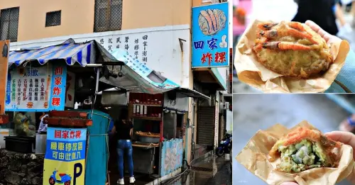 在台灣本島,看到炸粿通常就是炸年糕、米糕、芋粿等等,但澎湖的炸粿則像是蚵嗲,是用大湯匙盛粉漿、填料,連同湯匙一起油炸,成品看起來是中央厚、外緣薄的圓餅。而且回家炸粿是會在炸粿上面放整支帶殼狗蝦(也有幾家澎湖的炸粿也會這樣做),他們的粉絲專頁舊菜單上還會稱炸粿為烏龜揹蝦子