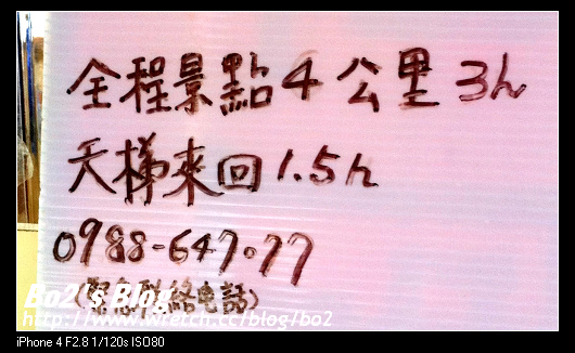 全部景點走完的話,約四公里要花三小時,天梯來回約1.5個小時,