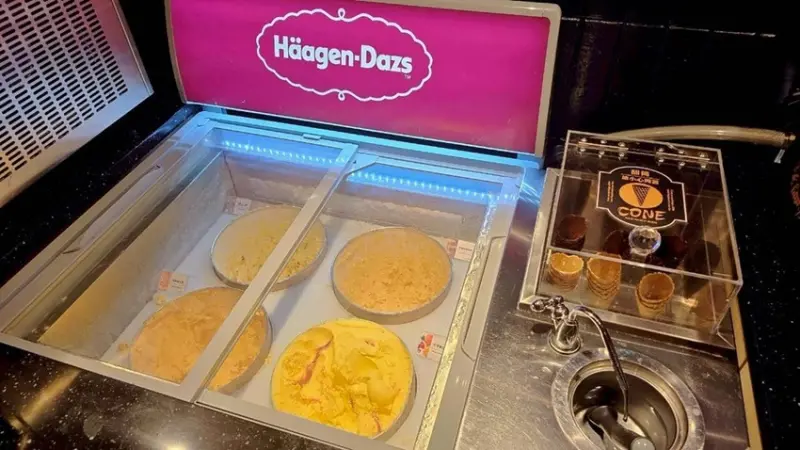 Haagen-Dazs有四種口味,當日是芒果、富盆子、焦糖等,亦可搭配旁邊得餅乾杯唷!