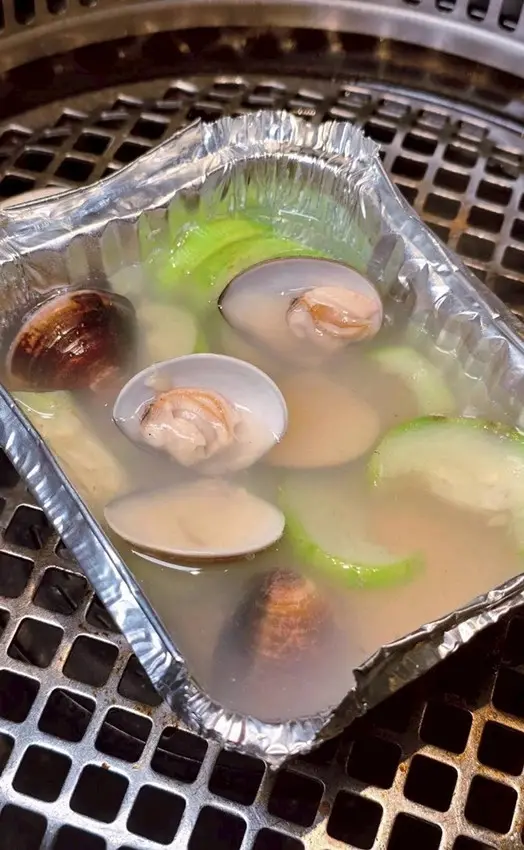 加上雞湯,再放到烤網上烤熟,整個過程就像在給食材做個小小的「蒸汽浴」。絲瓜吸滿了蛤蠣的鮮甜,蛤蠣也把海味融進湯裡,湯汁香氣濃郁又鮮美,每一口都像在喝精華版的海味雞湯。尤其是湯,絕對不能浪費唷!