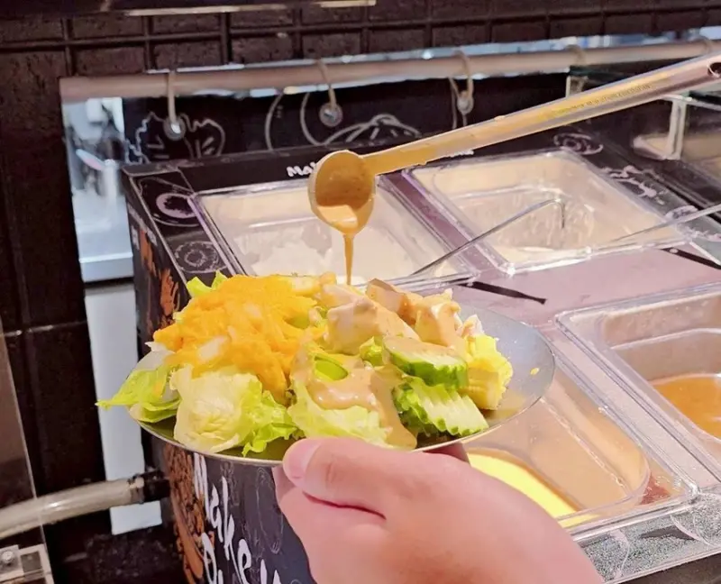 以往燒肉店的生菜通常只是一小盤,但來到燒肉MEN就不一樣了,這裡的生菜可以無限吃,超爽!而且生菜都是每日從雲林直送,新鮮度滿分。現切生菜搭配各種醬料、還有水果、水煮蛋、雞胸肉也能無限取用,真的超棒!不得不說,這一區是店裡超熱門的區域,大家都愛來這裡拿生菜沙拉。