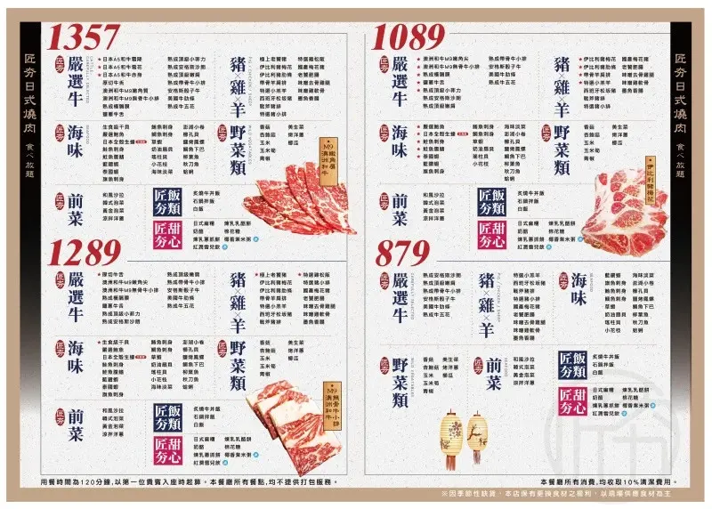 匠夯日式無煙燒肉|菜單、收費方式