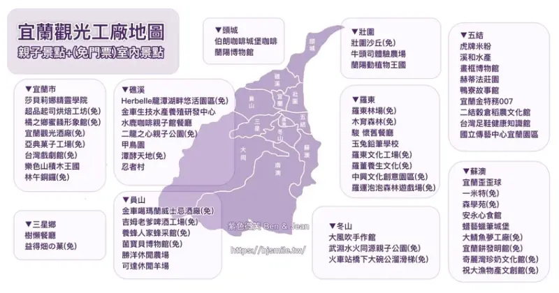 不論你想玩水、爬山、賞風景,還是親子旅遊、拍美照、探索觀光工廠,通通找得到!從「宜蘭免門票景點TOP30」、秘境步道、自然生態,到適合小朋友的體驗活動與熱門打卡點,不藏私一次整理給你,讓你輕鬆規劃宜蘭一日遊、二日遊或連假行程!