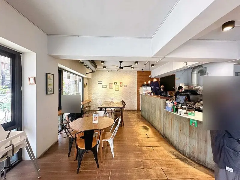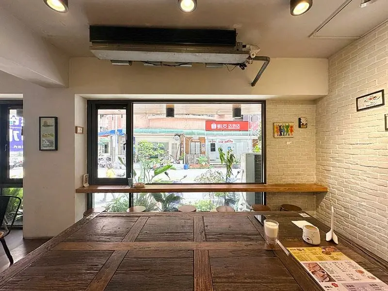 三角窗的位置,有著臨路對外的用餐窗台,裏頭的空間非常寬敞,綠植外披陽光穿透,整體環境明亮且溫馨。牆上裝飾著童趣插畫,靠窗座位、也有四~六人大桌,不管是一個人來吃午餐、三五好友聊天、或是爸爸媽媽帶小朋友來用餐都很不錯。