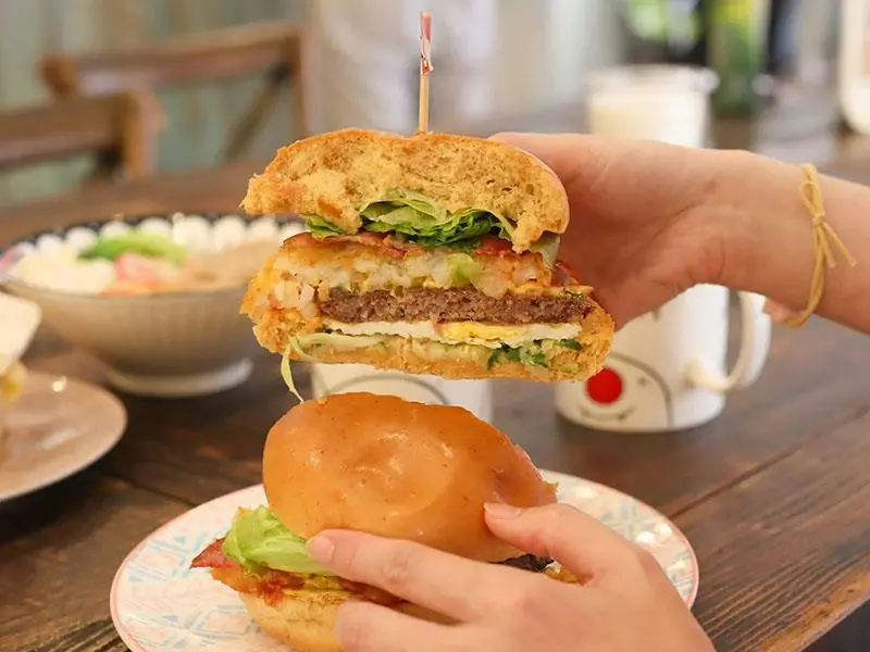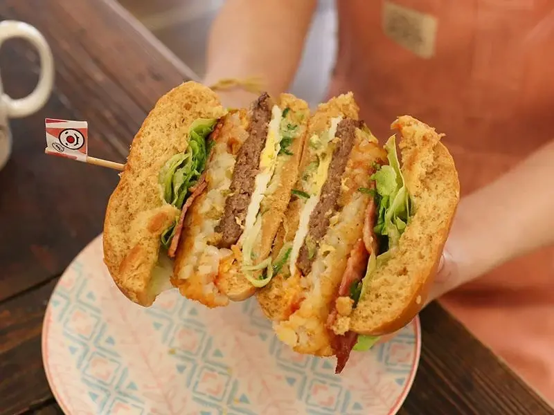 把薯餅、培根、起司一次疊好疊滿超級豪邁,一口咬下不僅視覺上的浮誇,更是一連串味覺衝擊,美式漢堡麵包鬆軟中帶點筋性,牛肉排軟嫩富有肉汁,這一顆吃完,連同午餐都可以省了。