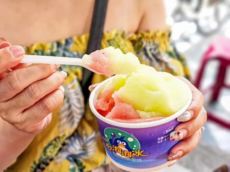 泡泡冰任選兩種是50元,會用同一個碗來裝,雙拼的概念
