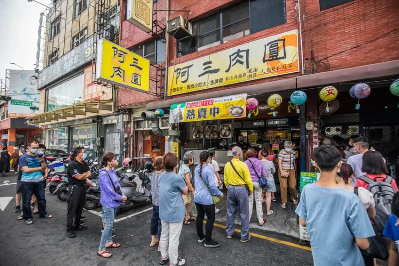阿三肉圓就位在彰化市三民路上,距離彰化景點『扇形車站』很近,當然這也是他的優勢之一,逛完扇形車站走路就可以來吃肉圓,附近有蠻多停車格可以利用,基本上門口是不用指望可以停車,都被排隊的人占滿了啦